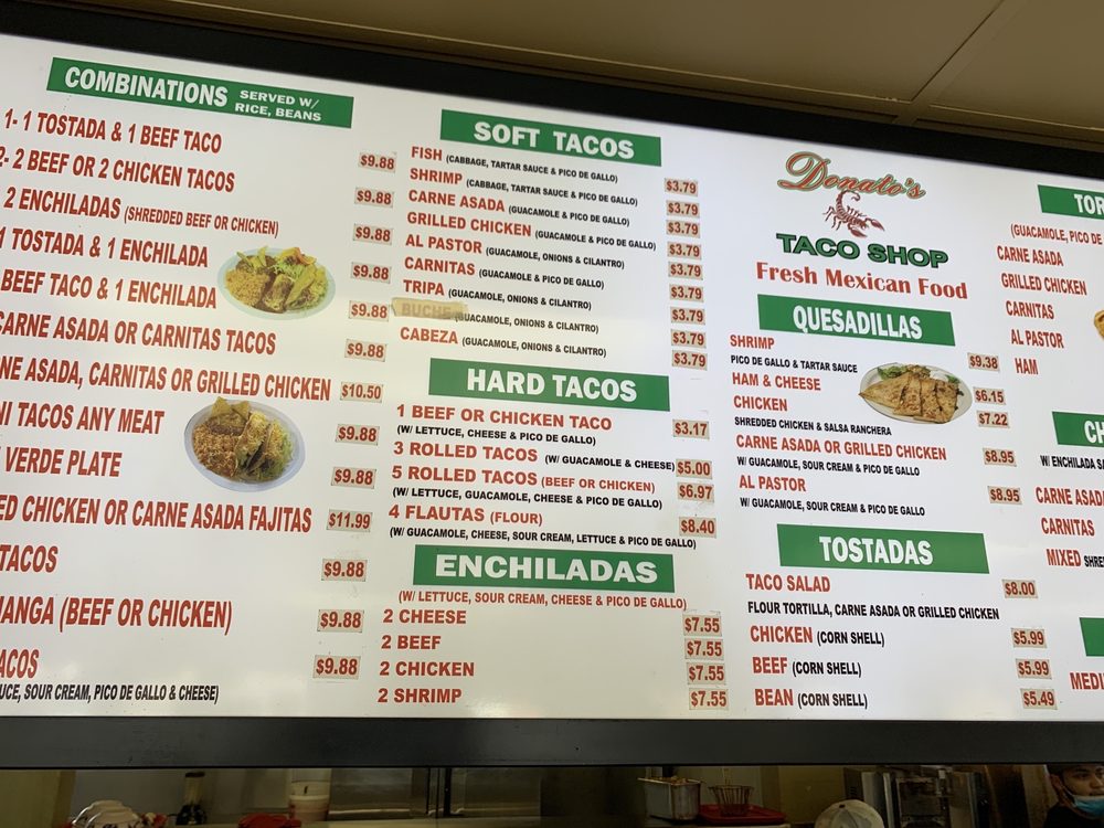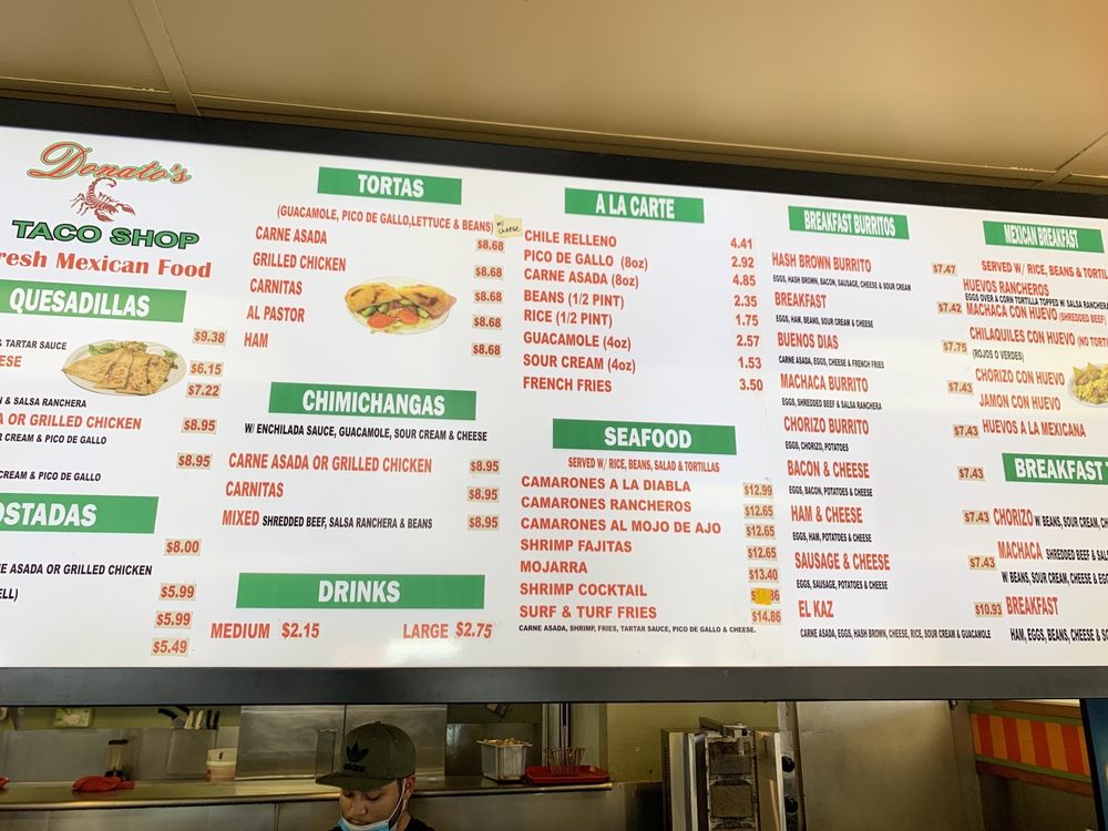 Introducing the menu at Donato's Taco Shop, located in San Diego, CA, offers a diverse selection of Mexican dishes. From flavorful burritos like the Jalapeno Burrito Carne asada to the California Surf Burrito with Carne asada and shrimp, there are options for every palate. The combination plates offer a variety of choices, including Tostada and Beef Taco Combo and Chile Verde Combo Plate. Donato's is known for its generous portions at reasonable prices, making it a popular choice for catering large orders. The reviews praise the quality of the food, with standout items like the Carnitas chimichanga receiving high acclaim. With a welcoming ambiance and quick service, Donato's Taco Shop is a must-visit for Mexican food enthusiasts in the area.